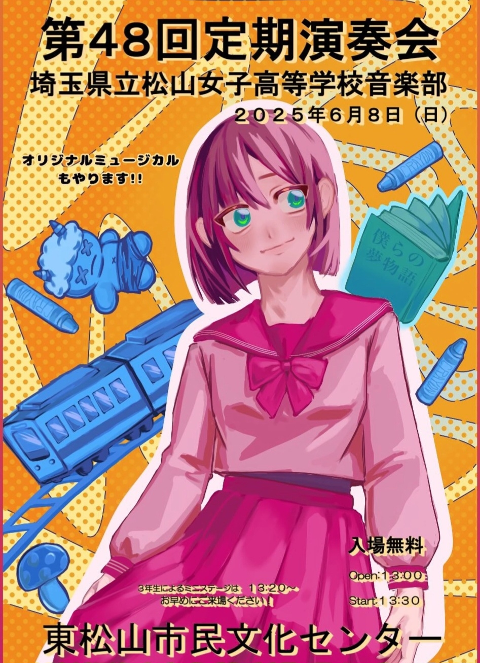 私たち音楽部の第48回定期演奏会が6月8日に東松山文化センターにて行われます!!